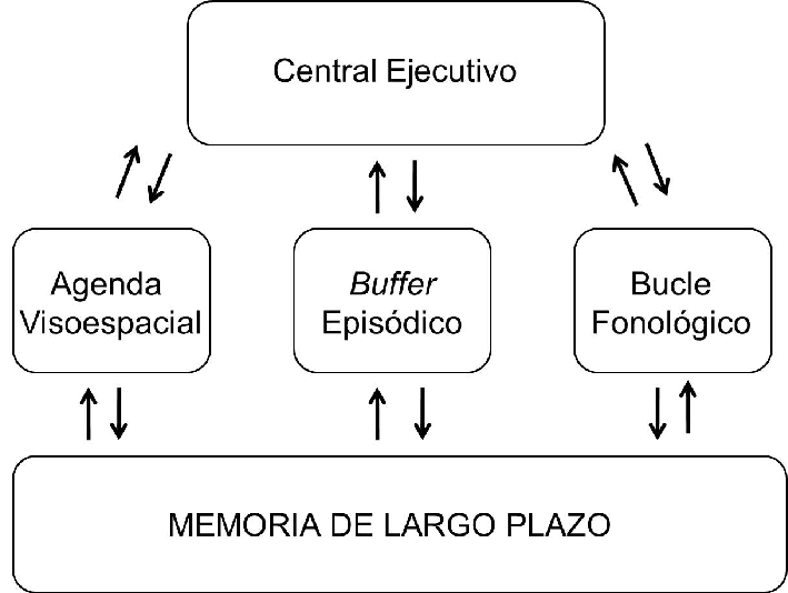 El modelo de memoria de trabajo propuesto por Baddeley y Hitch incluye varios componentes que trabajan en conjunto. Estos son el “ejecutivo central”, que actúa como un sistema de control que coordina la actividad de los sub-sistemas dedicados a la manipulación de información.