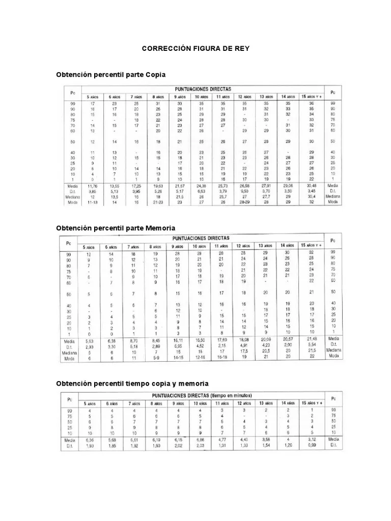 Baremos de puntuaciones del Test de Rey